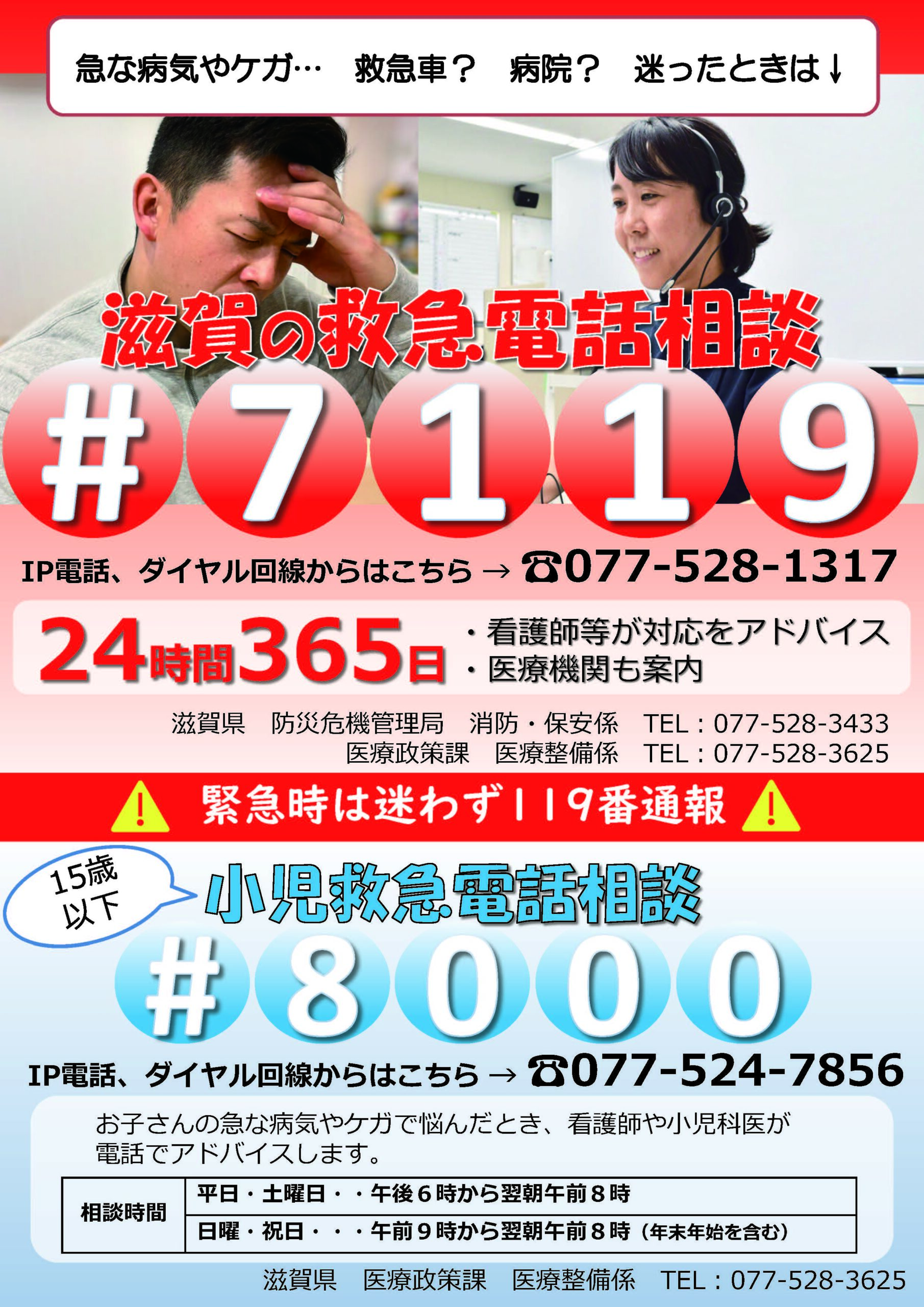 「滋賀の救急電話相談(#7119)」と「マイナ救急」が開始されます。