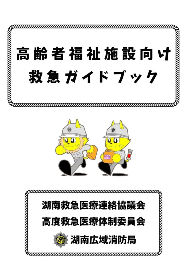 湖南広域消防局では、湖南救急医療連絡協議会にご協力いただき、介護職員のみなさまにご活用いただけるよう、高齢者福祉施設向け救急ガイドブックを作成し、配布しています。